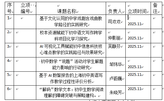 2025年度嘉定区丰庄中学教育科学研究各类课题立项